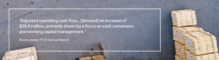 From a working capital perspective, there was an unwinding of the large increase in inventory seen in FY22. On average, DIO decreased by 13.1 days in FY23 (to 97.1 days). Customers paid 3 days more quickly (lower DSO) and suppliers were paid 13.6 days more quickly (lower DPO), which resulted in a small net decrease in DWC of 1.3 days (to 80.8 days).